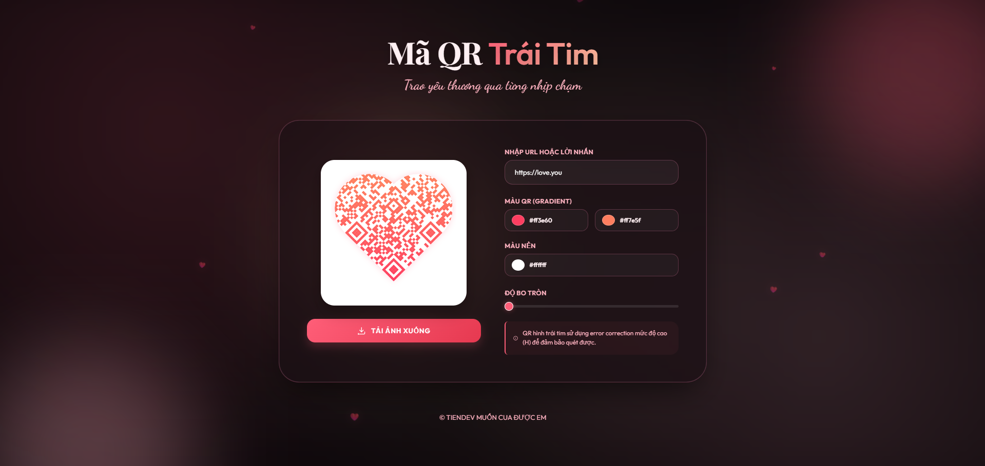 WEB TẠO MÃ QR TRÁI TIM