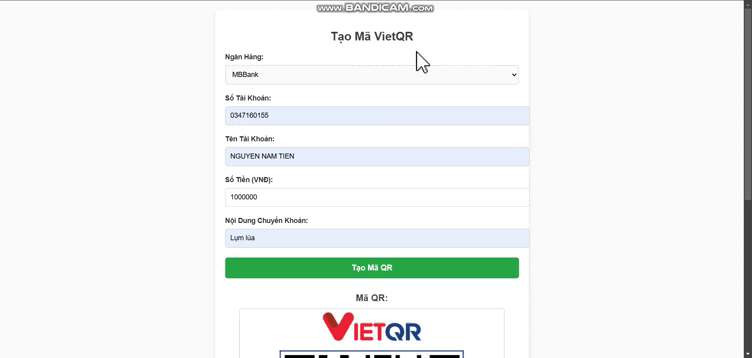 TẠO MÃ QR CHUYỂN TIÈN
